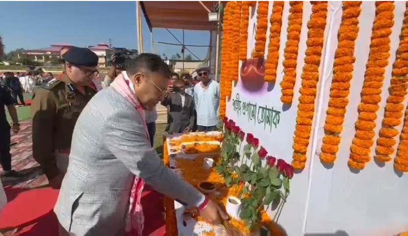 *শিৱসাগৰ জিলা প্ৰশাসনৰ উদ্যোগত বৰ্ডিং খেলপথাৰত আয়োজিত শ্বহীদ দিৱসত উপস্থিত অসম চৰকাৰৰ কেবিনেট মন্ত্ৰী বিমল বৰা।