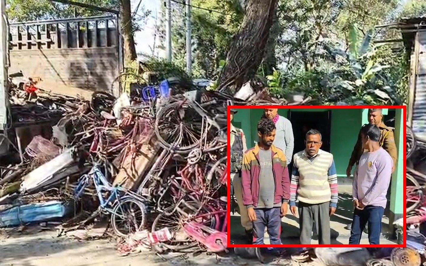 অভিযানত উদ্ধাৰ পুৰণা মটৰচাইকেলৰ যন্ত্ৰাংশ তথা বহু পুৰণা চাইকেল