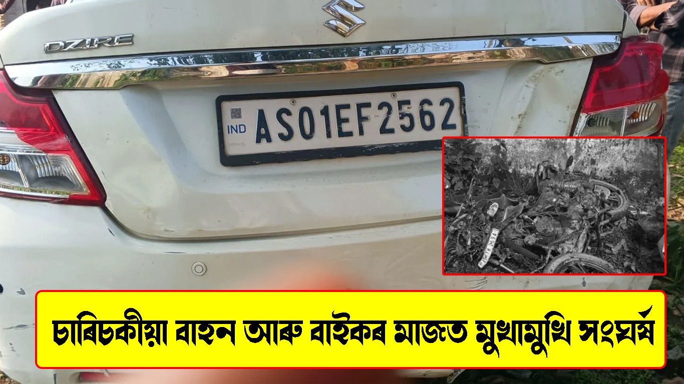 চাৰিচকীয়া বাহন আৰু বাইকৰ মাজত মুখামুখি সংঘৰ্ষ।