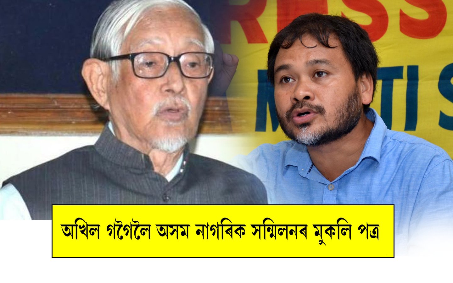 ৰাইজৰ দলৰ সভাপতি অখিল গগৈলৈ অসম নাগৰিক সন্মিলনৰ মুকলি পত্ৰ।