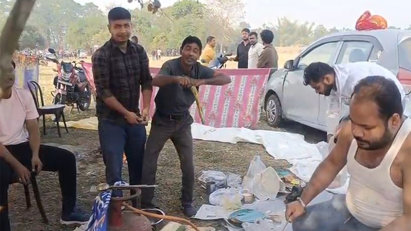 বজালীৰ কেন্দুগুৰিৰ পহুমাৰা চাপৰিতও সকলোবে লগে ভাগে এসাজ খাবলৈ আনন্দত মতলীয়া হোৱা দেখা গৈছে।