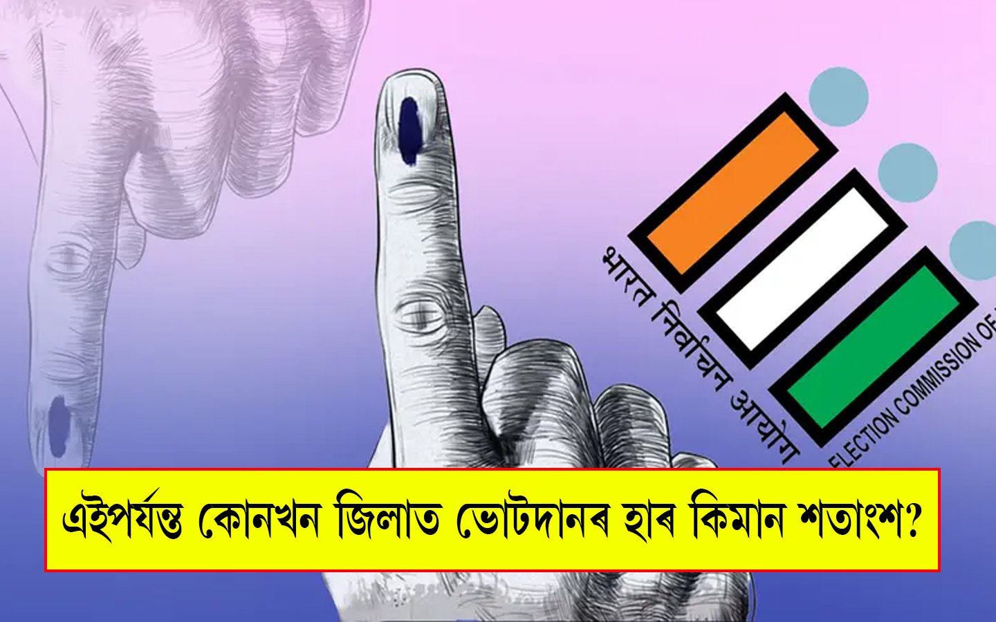 এইপৰ্যন্ত কোনখন জিলাত ভোটদানৰ হাৰ কিমান শতাংশ?