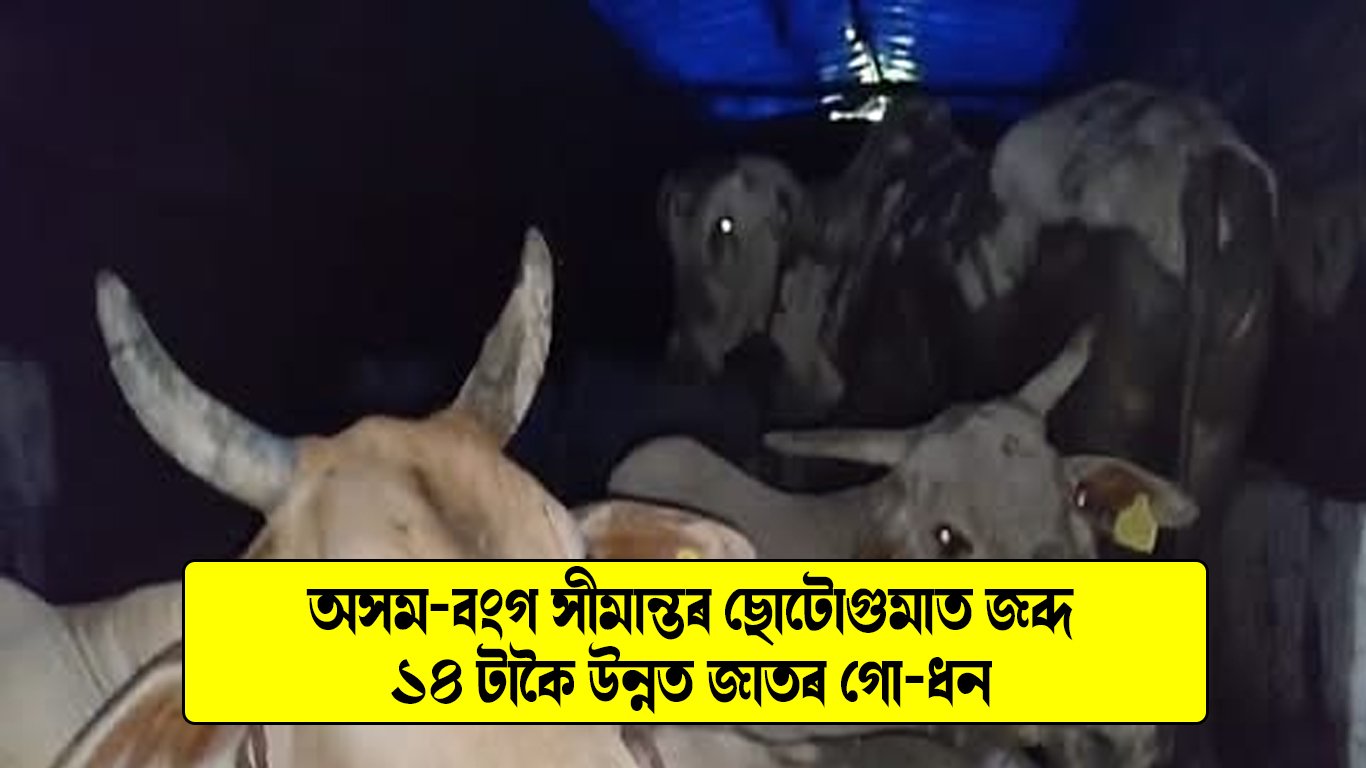 শনিবাৰে নিশা অসম বংগ সীমান্তৰ ছোটোগুমাত আৰক্ষীৰ অভিযান। অভিযানত জব্দ ১৪ টাকৈ উন্নত জাতৰ গো-ধন। ছোটোগুমা আৰক্ষীৰ অভিযানত জব্দ গৰু কেইটা।মালবাহী ট্ৰাকৰ ভিতৰত আনিছিল চোৰাং গো-ধন সমূহ। পশ্চিমবংগৰ পৰা ভিতৰুৱা পথেৰে অসমত প্ৰৱেশৰ সময়ত আটক কৰে গৰু ভৰ্তি ট্ৰাকখন। গাড়ী এৰি পলায়ন কৰে চালক হেণ্ডিমেন। জব্দকৃত গৰু ভৰ্তি বাহনখনৰ নম্বৰ AS-19 AC-5201 ।