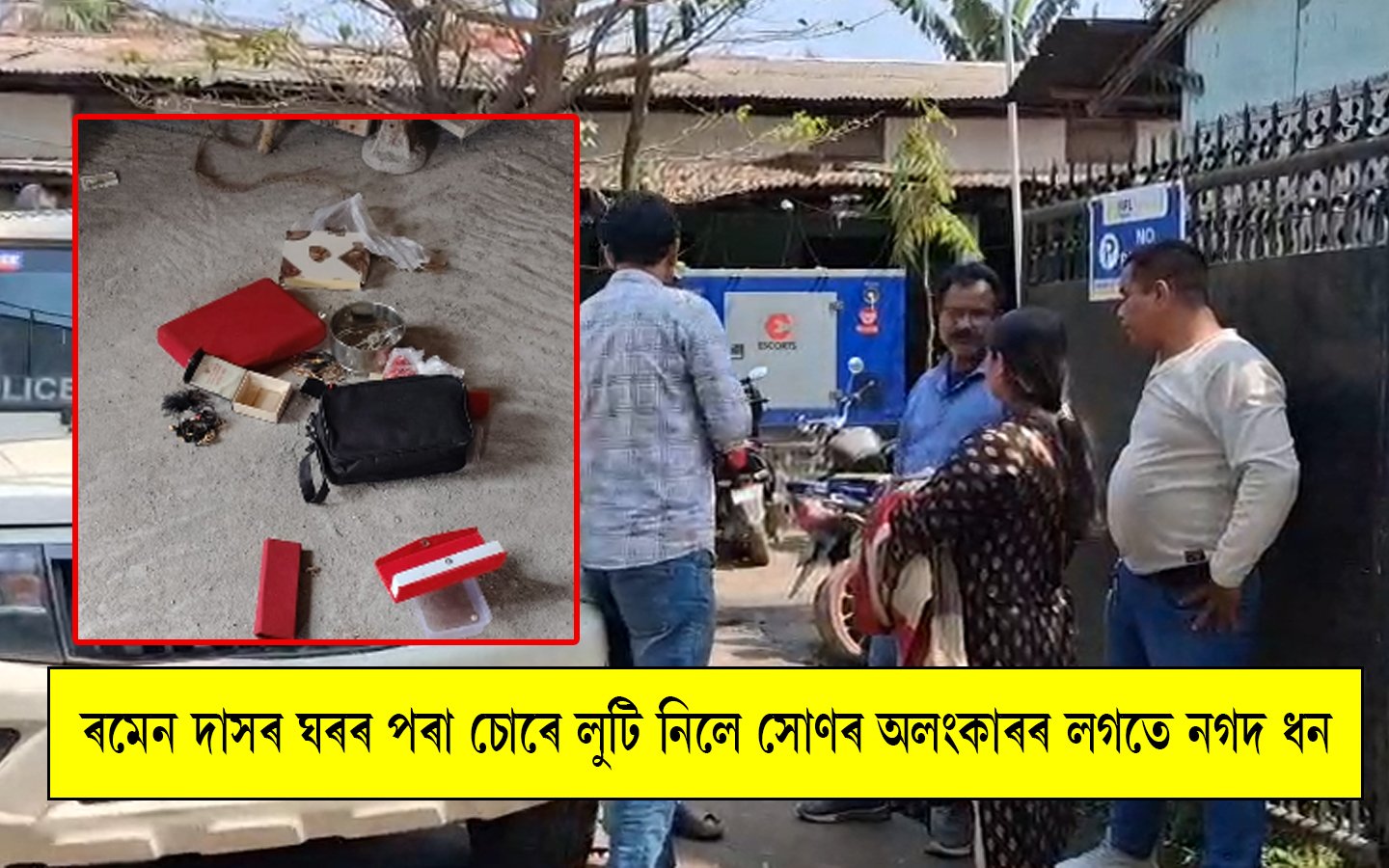 ঘৰত কোনো নথকাৰ সুযোগ লৈ সোমবাৰে সন্ধিয়াতে চোৰে আলমিৰা ভাঙি লুটি নিলে ২০ লাখ টকাৰ সোণৰ অলংকাৰ আৰু নগদ ২০ হাজাৰ টকা।