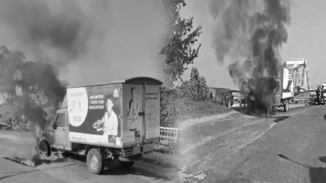 ৰাজপথত হঠাৎ জ্বলি উঠিল অক্ষয় পাত্ৰ সংগঠনৰ পিকআপ ভান।