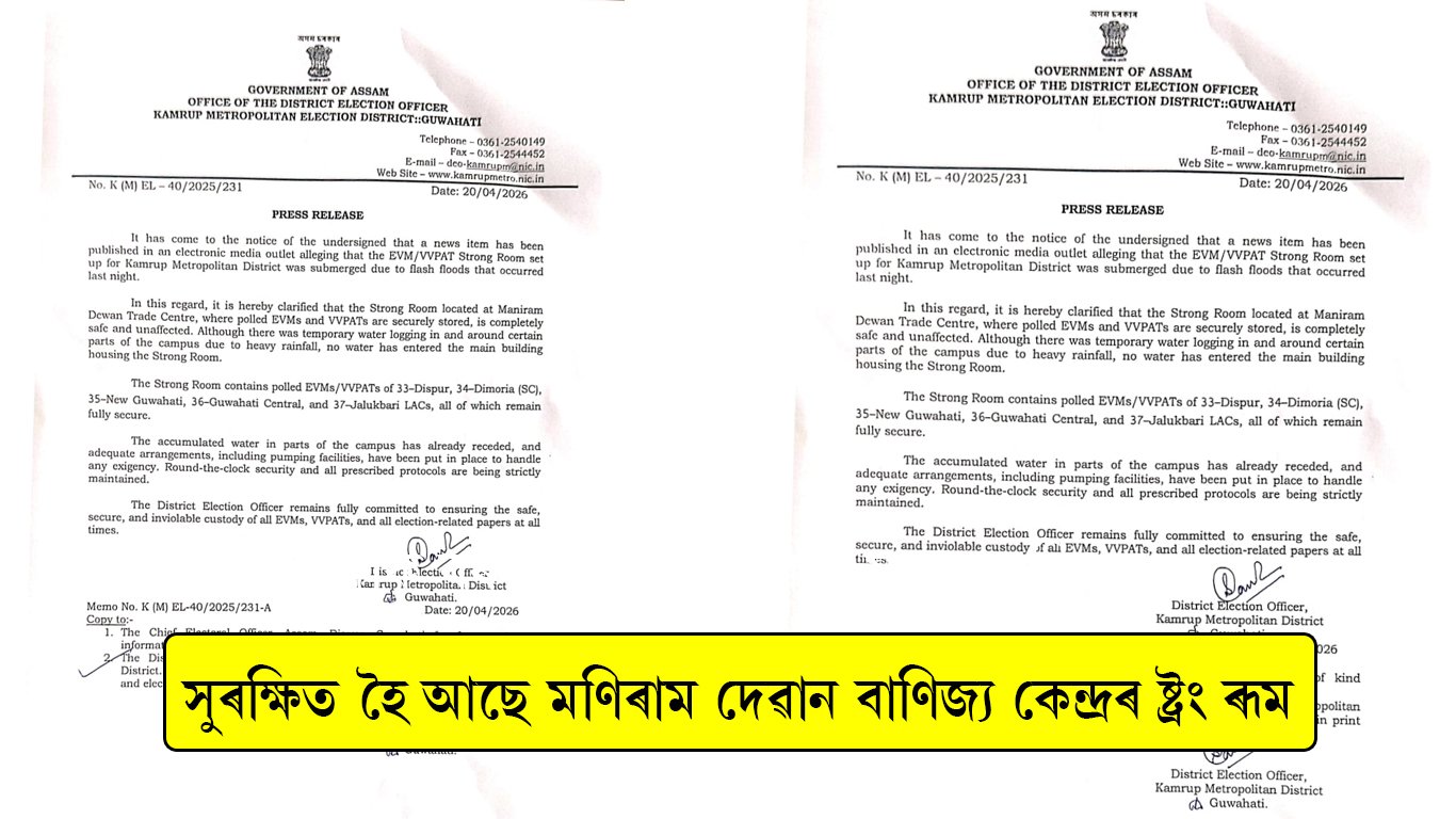 প্ৰেছ বিবৃতিযোগে এই কথা সদৰি কৰিলে কামৰূপ মহানগৰ জিলা নিৰ্বাচনী বিষয়াই