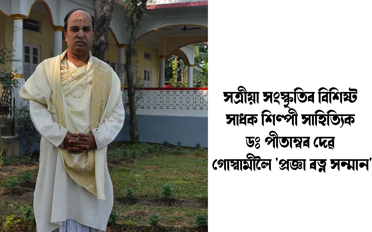 শ্ৰী শ্ৰী আউনীআটী সত্ৰৰ সত্ৰাধিকাৰ, সত্ৰীয়া সংস্কৃতিৰ বিশিষ্ট সাধক শিল্পী সাহিত্যিক ডঃ পীতাম্বৰ দেৱ গোস্বামীলৈ “প্ৰজ্ঞা ৰত্ন সন্মান” ।