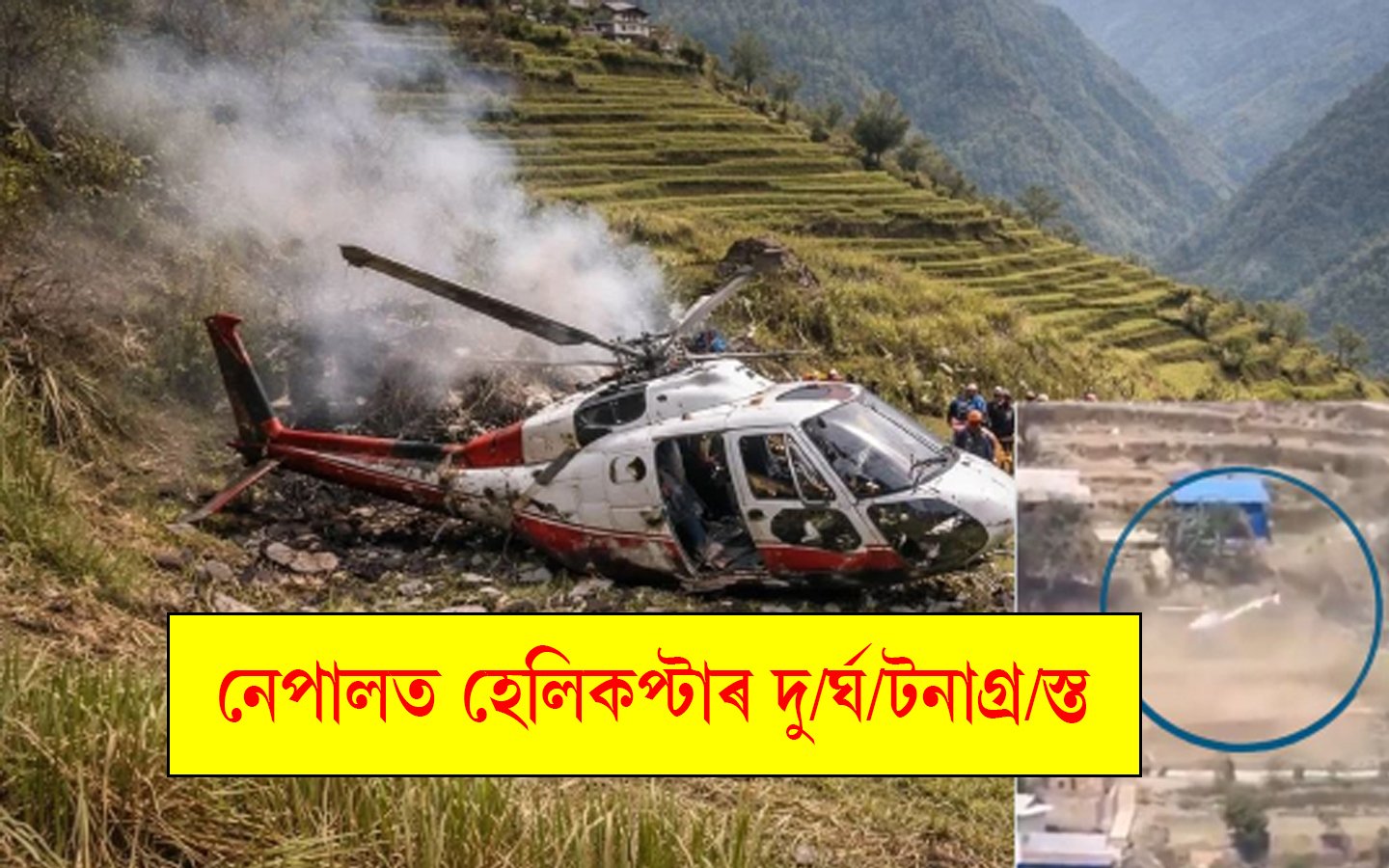 পুনৰ হেলিকপ্টাৰ দুৰ্ঘটনা। পূব নেপালত অৱতৰণৰ সময়তে দুৰ্ঘটনাত পতিত এখন হেলিকপ্টাৰ।