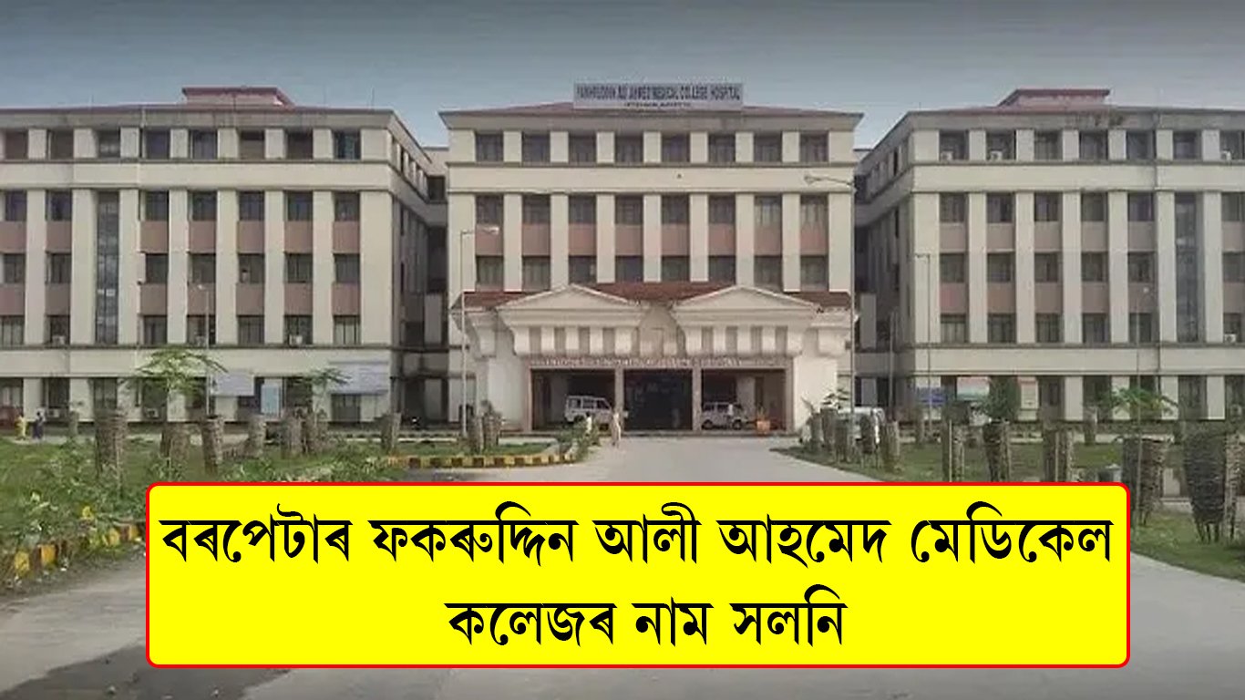 কেবিনেট বৈঠকৰ অন্তত সংবাদমেল সম্বোধন কৰি মুখ্যমন্ত্ৰীগৰাকীয়ে কয়, সলনি হ’ব। বৰপেটাৰ Fakhruddin Ali Ahmed Medical College and Hospitalৰ নাম মেডিকেল কলেজখনৰ নাম সলনিত অনুমোদন অসম কেবিনেটৰ। এতিয়াৰে এই মেডিকেল কলেজখনক ‘বৰপেটা চিকিৎসা মহাবিদ্যালয় আৰু চিকিৎসালয়’ হিচাপে জনা যাব।