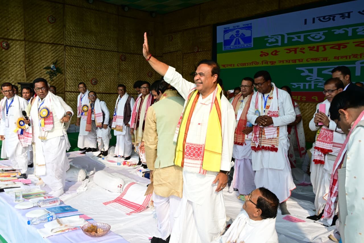 শোণিতপুৰ জিলাৰ জামুগুৰিহাটৰ জ্যোতি-বিষ্ণু সমন্বয় ক্ষেত্ৰত চলি থকা শ্ৰীমন্ত শংকৰদেৱ সংঘৰ ৯৫ সংখ্যক বাৰ্ষিক অধিৱেশনত আজি মুখ্যমন্ত্ৰী ড০ হিমন্ত বিশ্ব শৰ্মাই অংশগ্ৰহণ কৰে।