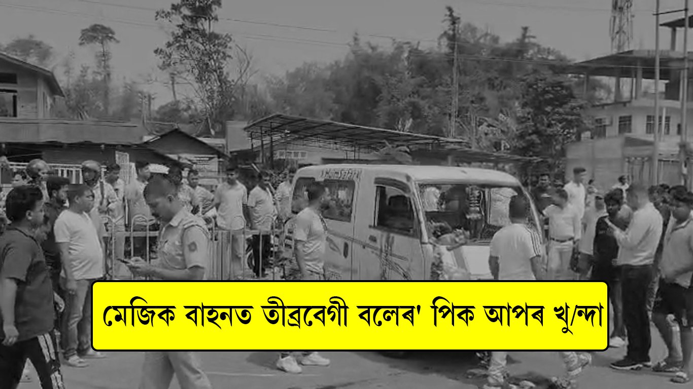 AS 03 AC 8866 নম্বৰৰ এখন মেজিক বাহনত তীব্ৰবেগী বলেৰ’ পিক আপৰ খুন্দা।
