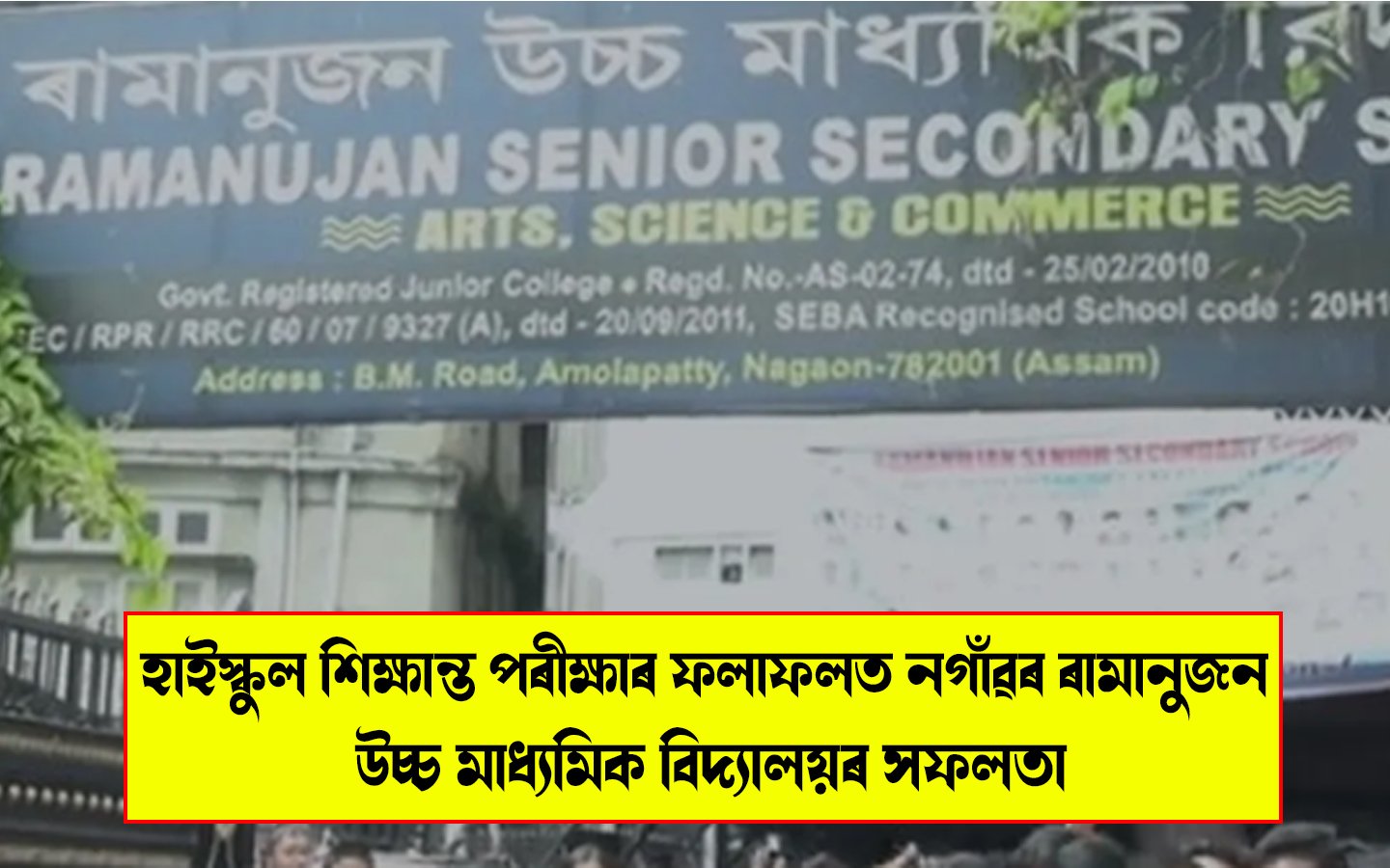 হাইস্কুল শিক্ষান্ত পৰীক্ষাৰ ফলাফলত নগাঁৱৰ ৰামানুজন উচ্চ মাধ্যমিক বিদ্যালয়ৰ সফলতা