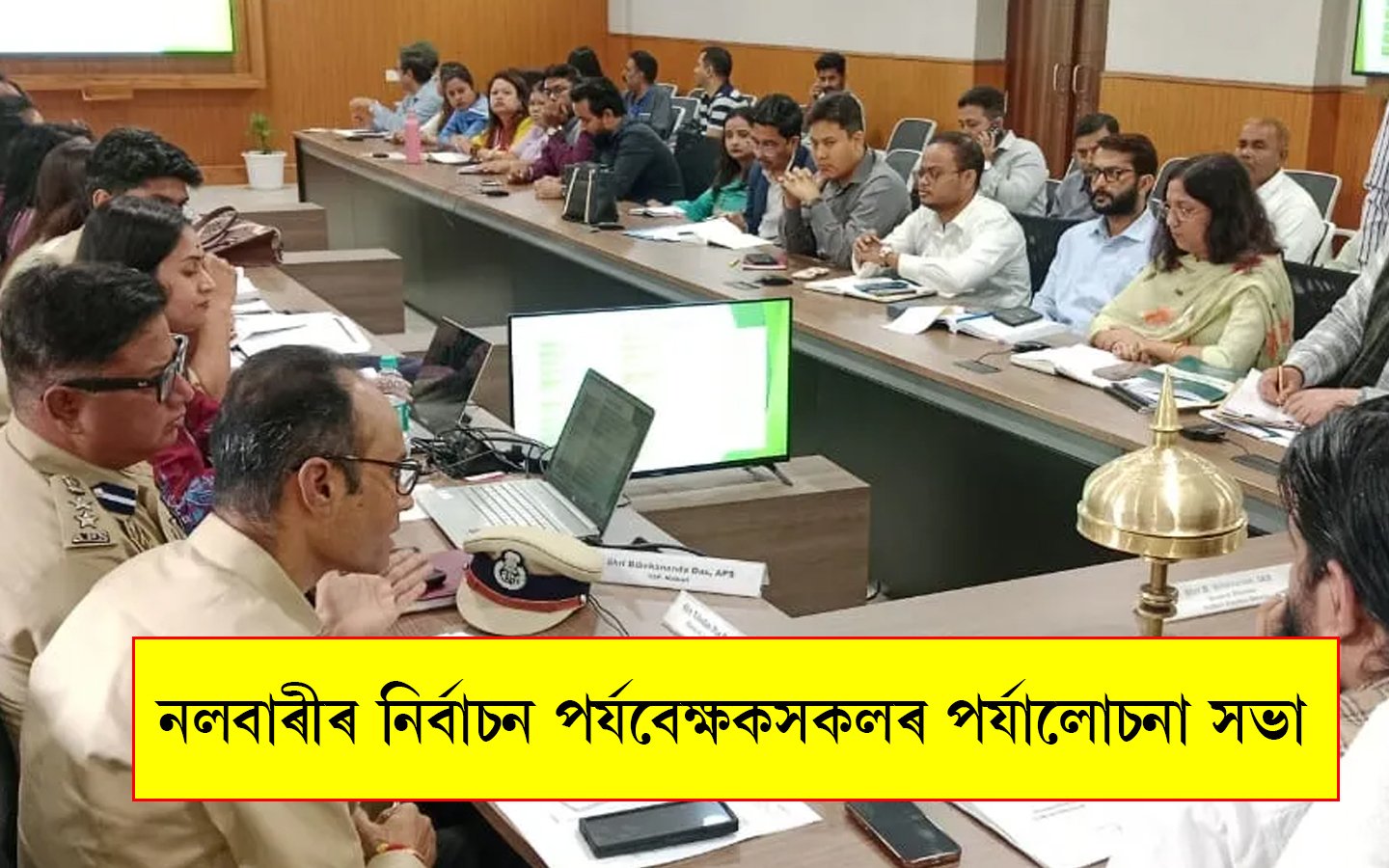 নলবাৰী জিলাত উপস্থিত নলবাৰী জিলাৰ বাবে নিযুক্ত সাধাৰণ পৰ্যবেক্ষক, ব্যয় পৰ্যবেক্ষক আৰু আৰক্ষী পৰ্যবেক্ষকসকল । ১৯ মাৰ্চত সাধাৰণ পৰ্যবেক্ষক ভাৰতীয় প্ৰশাসনিক সেৱাৰ বিষয়া বি শ্ৰীনিৱাসন, আৰক্ষী পৰ্যবেক্ষক ভাৰতীয় আৰক্ষী সেৱাৰ বিষয়া অবিনাশ কুমাৰৰ লগতে ব্যয় পৰ্যবেক্ষক ভাৰতীয় ৰাজহ সেৱাৰ বিষয়া আশুতোষ কুমাৰ চাহুই পুৱাৰ ভাগত জিলা আয়ুক্ত তথা জিলা নিৰ্বাচন বিষয়া নিৱেদন দাস পাটোৱাৰী আৰু অতিৰিক্ত জিলা আয়ুক্তকে ধৰি অন্যান্য নিৰ্বাচনী দায়িত্বপ্ৰাপ্ত বিষয়াৰ লগত পৰ্যালোচনা বৈঠকত মিলিত হয়।