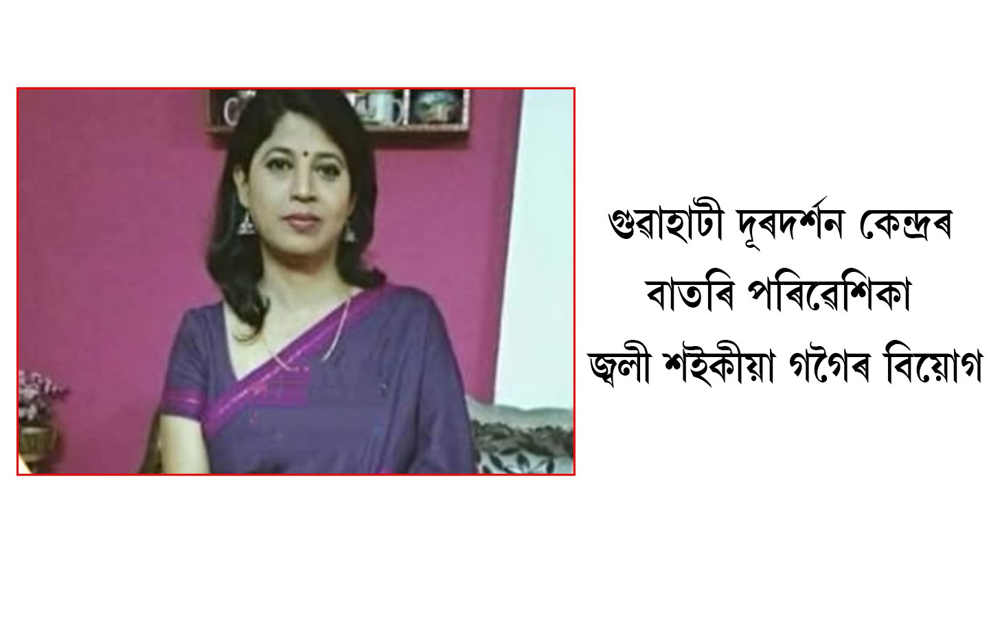 গুৱাহাটী দূৰদৰ্শন কেন্দ্ৰৰ বাতৰি পৰিৱেশিকা জ্বলী শইকীয়া গগৈৰ দেহাৱসান।