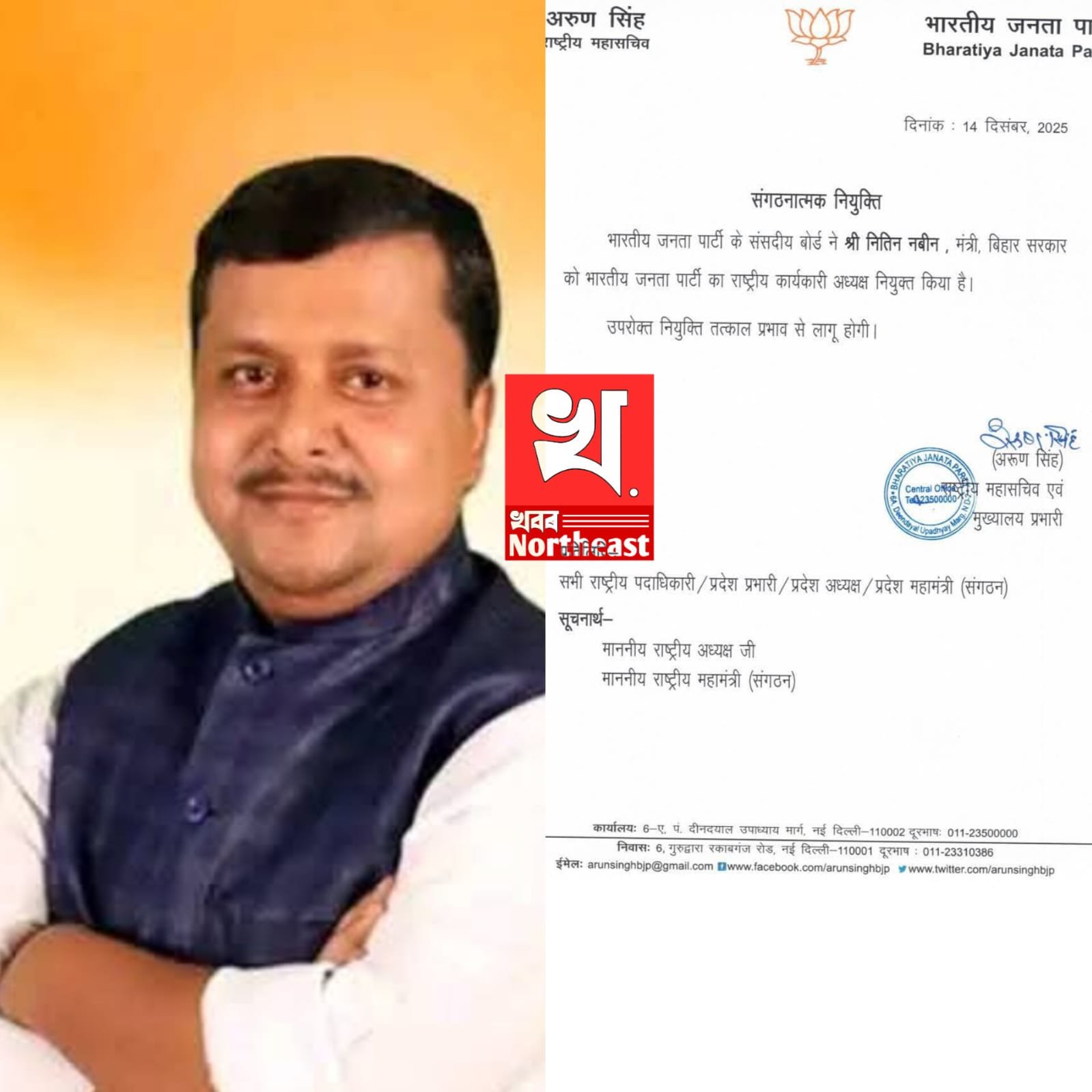 ৰাষ্ট্ৰীয় বিজেপিৰ নতুন কাৰ্যকৰী সভাপতি নীতিন নবীন।