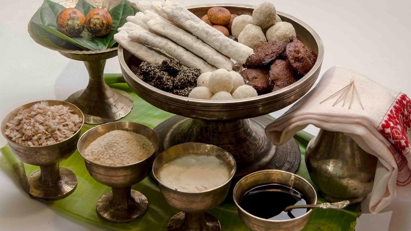 একেদৰে মেজি জ্বলোৱাৰ পাছতে সৰুৱে ডাঙৰক সেৱা জনাই আৰ্শীবাদ গ্ৰহণ কৰাৰ সমান্তৰালভাৱে জা-জলপান, পিঠা-পনা, ভিন ভিন প্ৰকাৰৰ লাডু, মাহ কঢ়াই আদিৰে ভোগালীৰ ভোগ গ্ৰহণৰ পৰম্পৰাও পালন কৰা পৰিলক্ষিত হয় ।