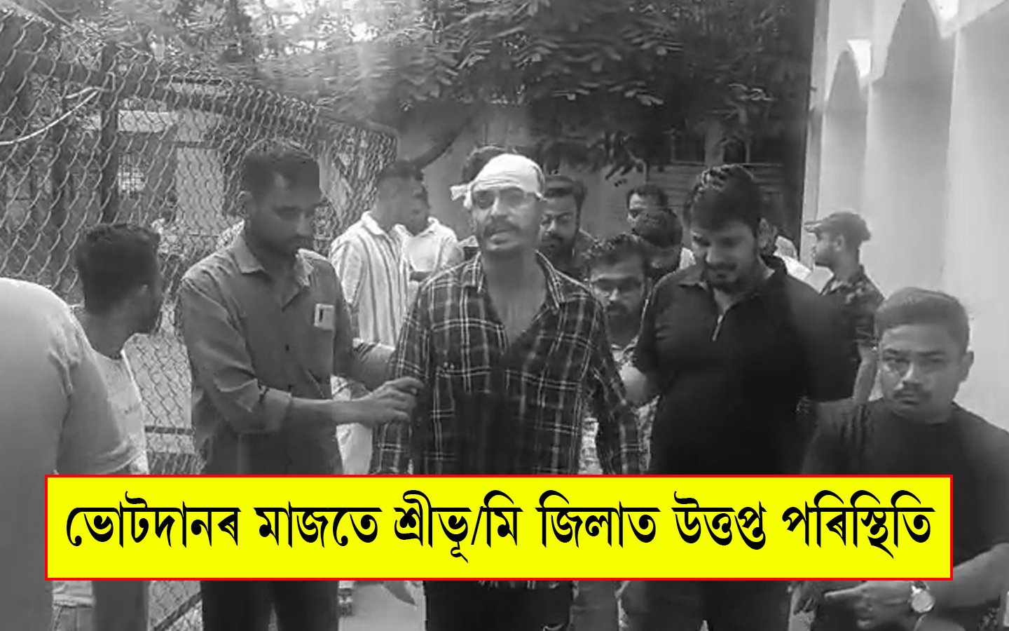 ভোটদানৰ মাজতে শ্ৰীভূমি জিলাত উত্তপ্ত পৰিস্থিতি। উত্তৰ কৰিমগঞ্জ সমষ্টিৰ শ্রীভূমি চহৰ অঞ্চলৰ ভোটগ্ৰহণ কেন্দ্ৰত হিংসাত্মক ঘটনা। কংগ্ৰেছ কৰ্মীৰ অভিযোগ যে বিজেপি কৰ্মীয়ে এজন কংগ্ৰেছ কৰ্মীৰ মূৰত চোকা অস্ত্রৰে আঘাত কৰে । বৰ্তমান কৰিমগঞ্জ হাস্পতালত চিকিৎসাধীন হৈ আছে।আহত লোকজন।