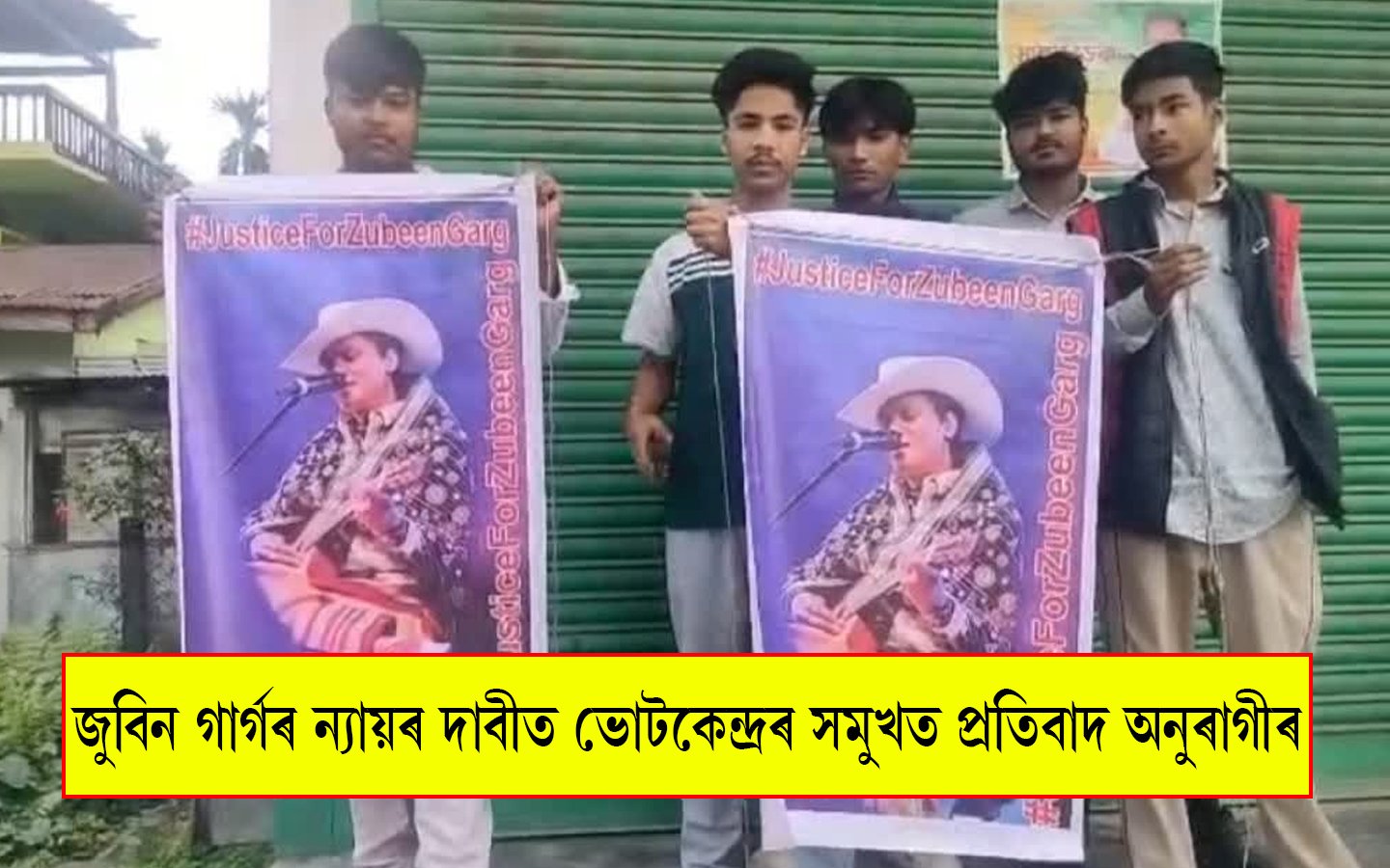 জুবিন গাৰ্গৰ ন্যায় বিচাৰি ওলাই আহিল এইসকল যুৱক-যুৱতী কেইবাজনো যুৱকে বেনাৰত #Justice For Zudeen Garg লেখি ভোটকেন্দ্রৰ সন্মুখত প্ৰতিবাদ কৰে ।
